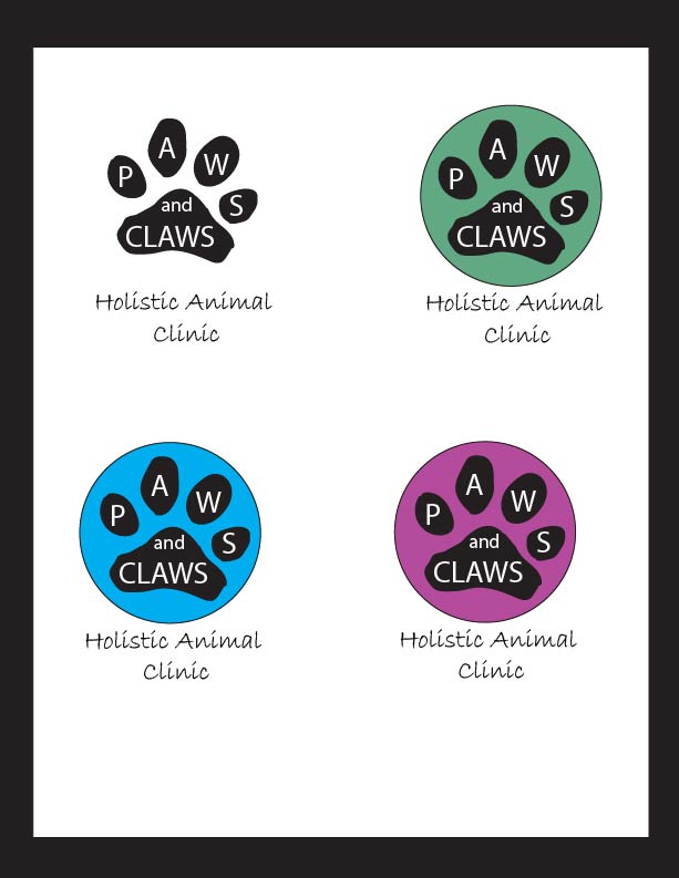 These are logos created for a dog groomer named Paws and Claws. I created logos that have a paw and a cute dog because the images should appeal to adults and children and all dog owners. I created a brand logo and colors that could be associated with the brand. I used Adobe Illustrator to create and adjust the logo.
